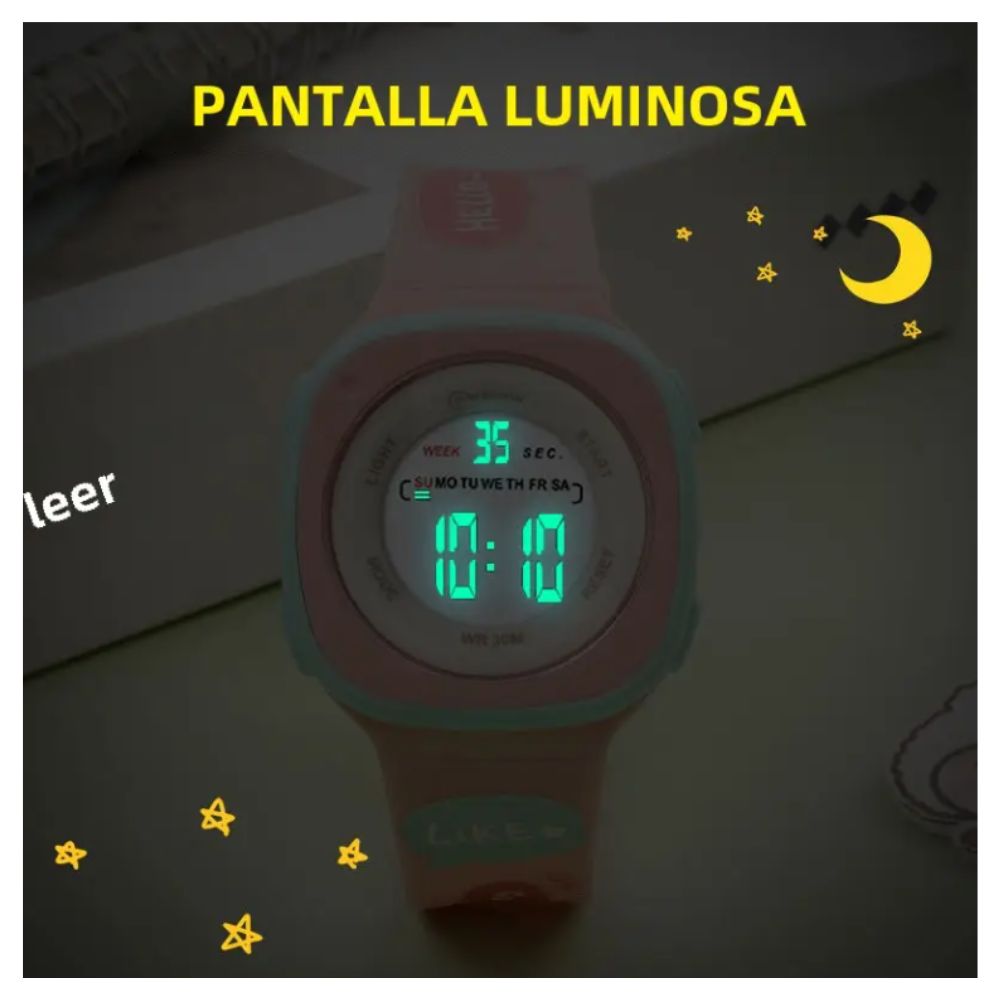 Género: Niña Forma de la caja: Hexagonal Visualización: Digital Tipo de cierre: Hebilla Material de la caja: Metal Material de la correa: Plástico Color de la correa: Lila Función del bisel: Estacionario Resistencia a la presión del agua: 3 ATM Calendario: Sí Largo de la correa: 22 cm