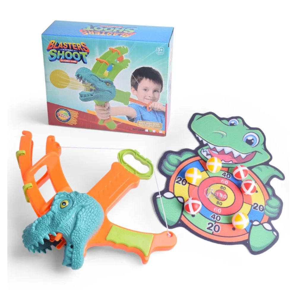El regalo perfecto para niños y niñas que aman los dinosaurios y disfrutan del juego activo. Este arco de dinosaurio cuenta con espacio para almacenar hasta 6 pelotas adhesivas y tiene una capacidad de disparo de largo alcance para un mayor desafío. Además este juego de tiro al blanco al tener pelotas en vez de objetos punteagudos, garantizan un juego seguro y cómodo. El juguete consta de 1 arco con cabeza de dinosaurio, 6 pelotas adhesivas y 1 objetivo de tablero con diseño de dinosaurio.