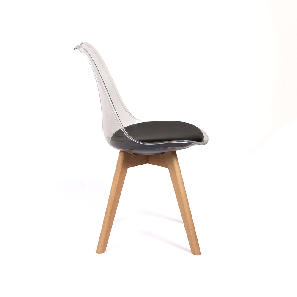Silla Acolchada Modelo Eames Transparente con Asiento Negro